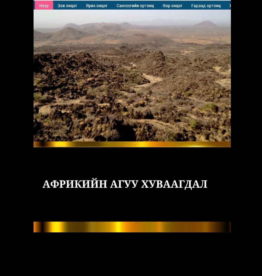 Дэлхийн царцдас 14 жилийн өмнө гэнэт хөдөлж, бидний амьдардаг дэлхий ертөнцийн ихэнхийг газар хөдлөлт, дэлбэрэлт, мегацунамигаар арчиж хаяагүй.Гэсэн яваандаа Африк хуваагдах магадлалтай. Хойд Этиопын алслагдсан Афар бүс нутагт Y хэлбэрийн хагарал байдаг. Хагарал системийн төвд байрласнаар дахин шинэ тив нь шинэ далай үүсгэж, салснаар Африкийн агуу хуваагдал бий болж болзошгүй байгааг эрдэмтэд сануулсан байна. /Жак Банток/